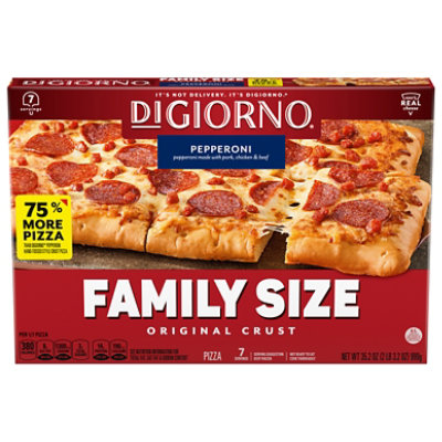 DiGiorno Rising Crust Pizza Pepperoni Original - Giant Food Instagram: Post your picture perfect pizza & tag (at)digiorno. Cook thoroughly. Step 1: Preheat: Preheat & bake at 400 degrees F. Keep pizza frozen while preheating. Step 2: Prep: Remove pizza from freshness wrap. Step 3: Place: Place pizza directly on center oven rack. Step 4: Bake: Bake 21 minutes. Step 5: Enjoy. Hand-Tossed Style Pepperoni Frozen Pizza | Official DIGIORNO® - goodnes Step 1 Preheat & bake at 375°F. Keep pizza frozen while preheating. Step 2 Remove pizza from freshness wrap. Step 3 Place pizza directly on center oven rack. Step 4 Bake 17 to 19 minutes. Tips WHY IT'S SO TASTY 100% Real Cheese Fresh Baked Taste Fresh Baked Aroma Hand-Tossed Style Crust Nutrition NEED MORE PIZZA? Hand-Tossed Style Crust Digiorno Deep Dish Pepperoni Frozen Pizza 26oz - Walmart Business The DiGiorno frozen pizza is topped with tasty pepperoni and real mozzarella cheese, delivering a delicious, easy dinner. The crispy pizza crust offers a soft and tender inside surrounded by a crisp and caramelized outside. This pepperoni pizza is made with 100% real cheese and DiGiorno signature tomato sauce. Primo Pepperoni Pizza Nutrition Facts - Eat This Much Primo Pepperoni Pizza DiGiorno. Main info: Primo Pepperoni Pizza DiGiorno 1 slice 320.0 Calories 32 g 15 g 15 g 1 g 30 mg 7.0 g 790.0 mg 3 g 0 g. Find on Amazon. ... Amount of calories in Primo Pepperoni Pizza: Calories: Calories from Fat (%) % Daily Value * How much fat is in Primo Pepperoni Pizza? Amount of fat in ...