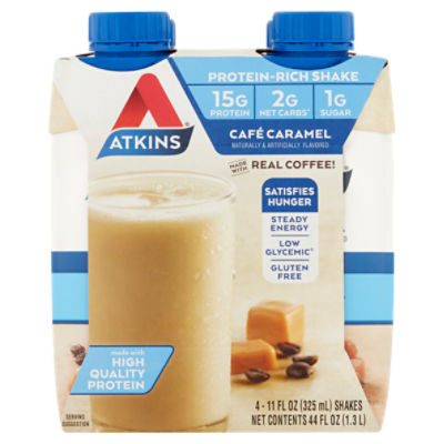 Atkins Protein-Rich Shake Cafe Caramel - 4 pk - Stop & Shop Save when you order Atkins Protein-Rich Shake Cafe Caramel - 4 pk and thousands of other foods from Stop & Shop online. Fast delivery to your home or office. ... If you receive a product from Stop & Shop, and the nutritional information on the product label does not match the information on our site, please contact Stop & Shop customer service ...