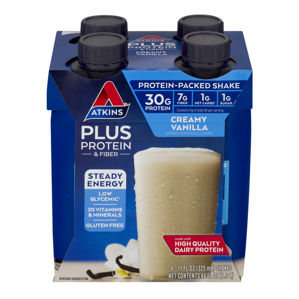 Atkins Nutritionals Ready-to-Drink Shakes - Netrition.com Nutrition Facts ; Net Carbohydrates, 4 mcg mg g I.U. mcg mg g I.U., null% null% ; Protein, 15 0 mcg mg g I.U. mcg mg g I.U., 28% null%. Atkins PLUS Protein & Fiber Shake, Chocolate, Keto Friendly, 11 oz ... Nutrition facts ; Sodium 190.0mg, 8% ; Total Carbohydrate 9g, 3% ; Dietary Fiber7.0g, 28% ; Sugars1.0g. Atkins Protein Rich Shake Creamy Vanilla RTD - 4 pk - Stop & Shop Water, Milk Protein Concentrate, Soy Protein Isolate, Sunflower Oil, Prebiotic Soluble Corn Fiber, Cream, Natural And Artificial Flavors, Vitamin & Mineral ...