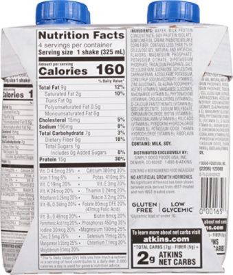 Atkins Protein Rich Shake Creamy Vanilla RTD - 4 pk - Stop & Shop Water, Milk Protein Concentrate, Soy Protein Isolate, Sunflower Oil, Prebiotic Soluble Corn Fiber, Cream, Natural And Artificial Flavors, Vitamin & Mineral ...