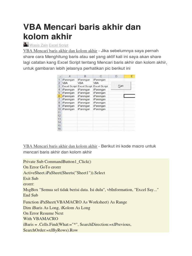 VBA Mencari Baris Akhir Dan Kolom Akhir | PDF